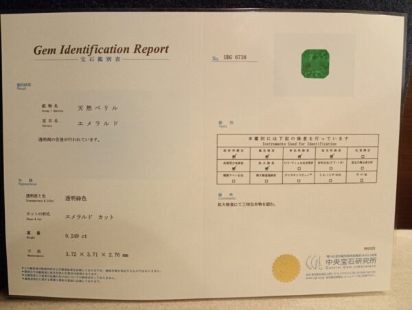 0.249ct コロンビア産エメラルド(エメラルドカット)